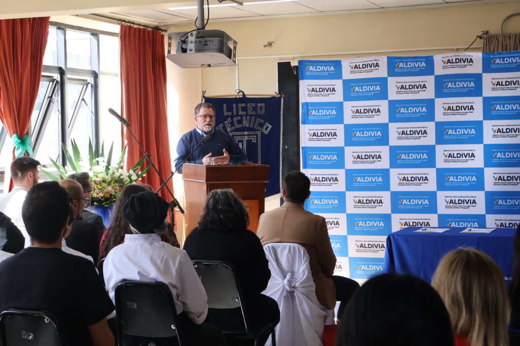 Director del SLEP Valdivia, “estamos el día de hoy en el Liceo Técnico, acompañando a su directora, Bernardita y al representante de la delegación francesa para la firma del convenio que establece el vínculo entre el Liceo Técnico de Valdivia y el Liceo de Francia. Es una oportunidad muy importante para que los estudiantes puedan tener distintas experiencias, especialmente de intercambio, ya sea presencial o virtual, y que potencien el trabajo que hacen los profesores con sus estudiantes acá para la mejoría de los liceos”. Agregó “Francia es una inspiración para muchos aspectos, entre ellos, principalmente, la cocina, y esperamos que se vean claramente beneficiados por este proceso de trabajo en conjunto. Así que felicitamos al Liceo Técnico por su convenio y vamos a estar respaldándolo con toda nuestra energía y esfuerzo”.